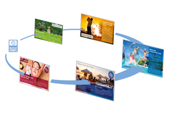 Promova os seus serviços internos junto dos seus clientes com páginas personalizáveis de informações do hotel.